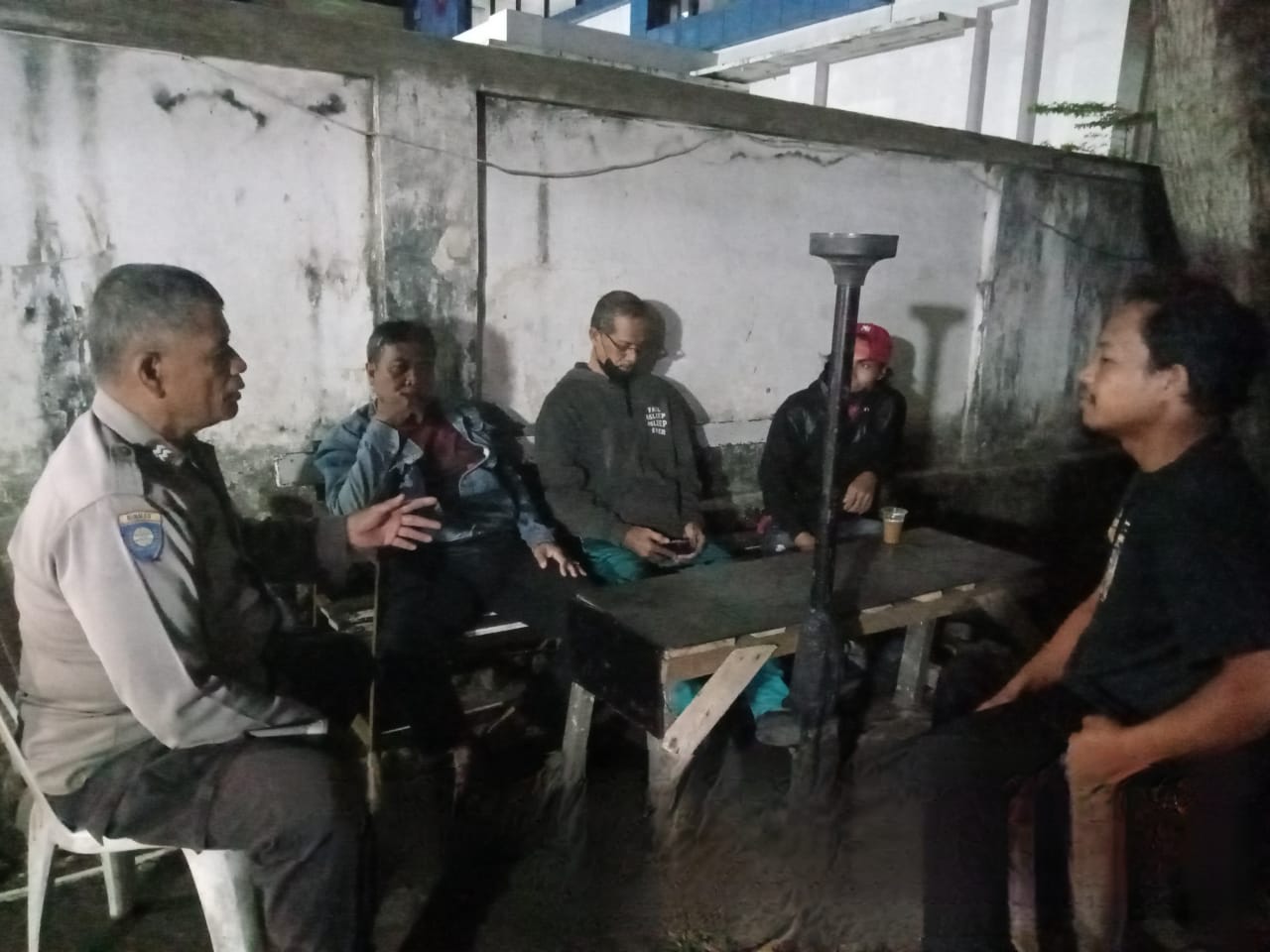 POLRES CIREBON KOTA -, Pantau siskamling, Bhabinkamtibmas kelurahan kesambi Polsek kesambi Polres Cirebon kota Aiptu Ade Wardaya sambang poskamling RW 04 sigendeng kelurahan kesambi memberikan edukasi Kamtibmas, Sabtu malam (20/07/2024)
