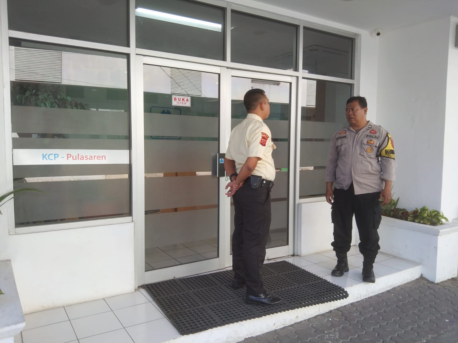 Bhabinkamtibmas pulasaren Aiptu Bubung sambang petugas satpam Bank BPR, ajak sinergi Kamtibmas , Kamis (18/07/2024).