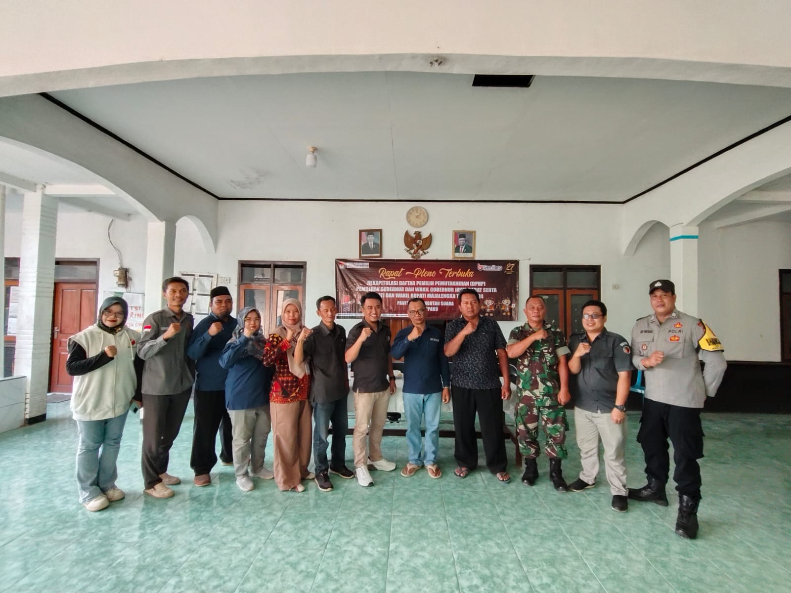 Majalengka – Bhabinkamtibmas Desa Cipaku, Bripka Bib Abi Musyadat, dari Polsek Kadipaten Polres Majalengka Polda Jabar, bersama Babinsa Desa Cipaku dari Koramil 1717 Kadipaten, menghadiri Rapat Pleno Terbuka Rekapitulasi Daftar Pemilih Hasil Pemuktahiran (DPHP) Pemilihan Kepala Daerah Serentak 2024 tingkat PPS Desa Cipaku, Kecamatan Kadipaten. Kehadiran TNI-Polri dalam kegiatan ini menunjukkan komitmen mereka dalam menjaga keamanan dan ketertiban selama proses pemilu. Minggu (04/08/2024).