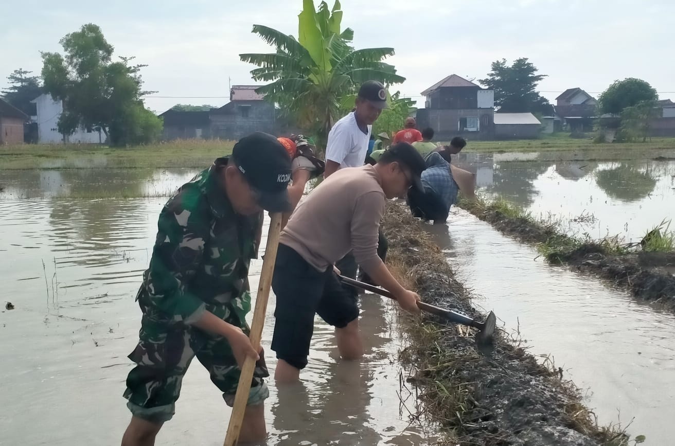 Gotong-royong ini mencerminkan semangat kebersamaan dan kerja sama yang kuat antara aparat dan masyarakat untuk mengatasi tantangan yang ada, terutama di sektor pertanian yang menjadi tulang punggung perekonomian warga.