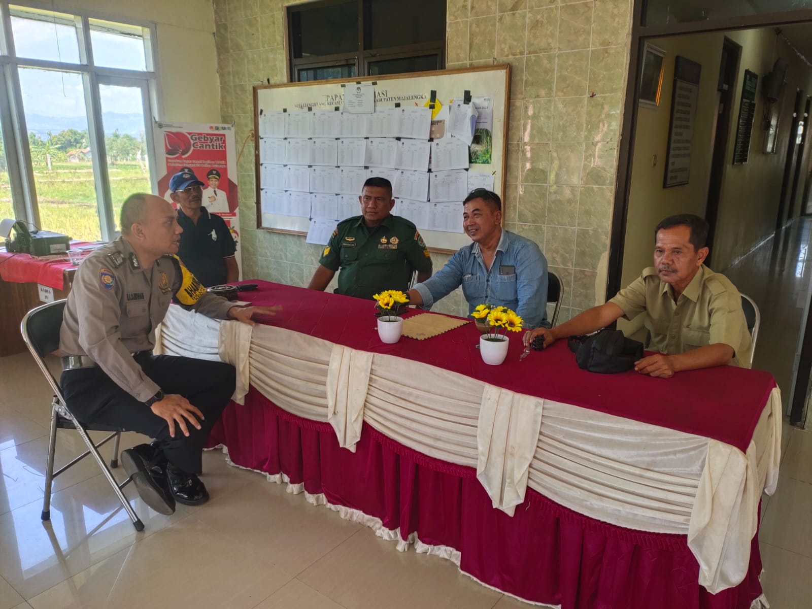 Dalam sambang Bhabinkamtibmas dan Babinsa memberikan himbauan kamtibmas untuk selalu menjaga harkamtibmas guna terwujudnya sitkamtibmas yang aman dan kondusif.