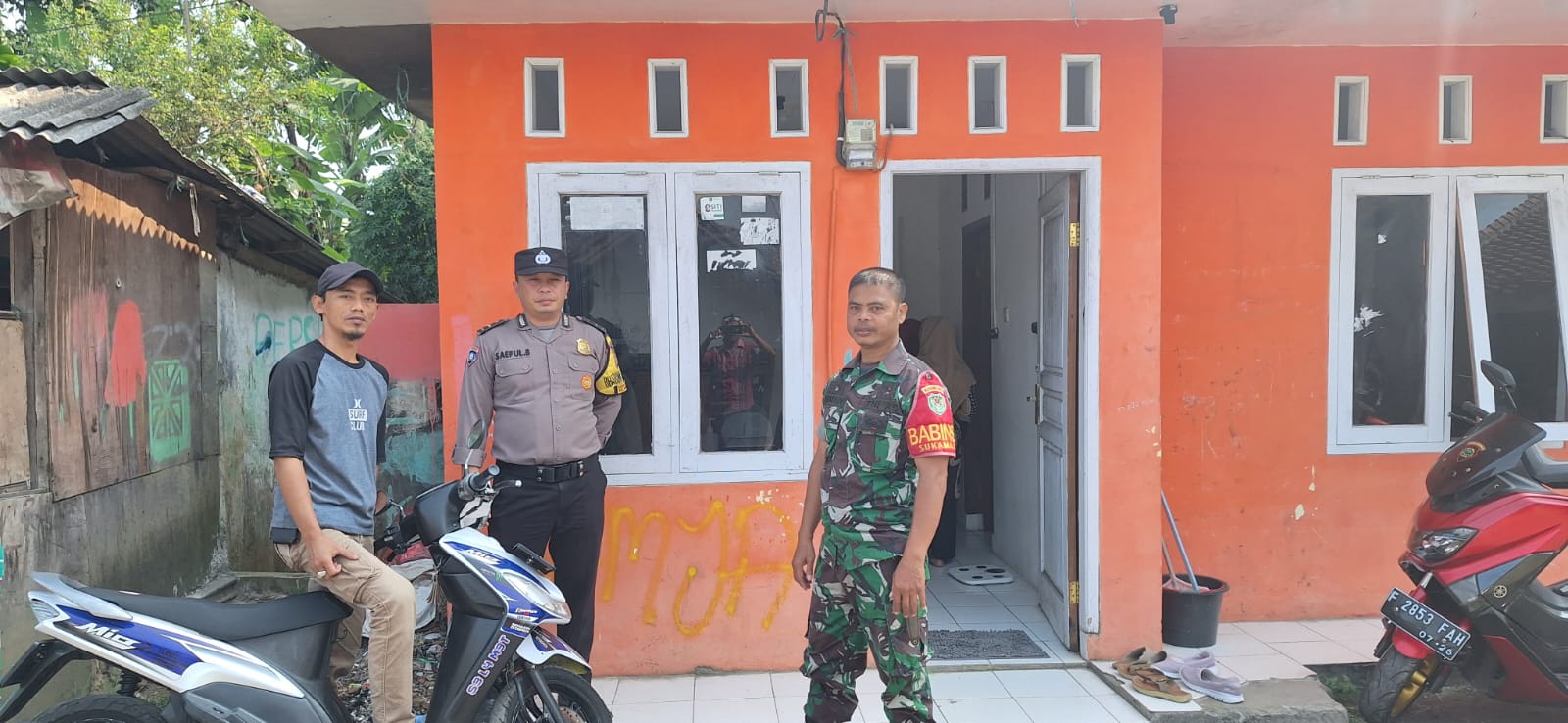 Polres Bogor – Polsek Megamendung Disela menjalankan tugas sehari hari Bhabinkamtibmas Desa Sukamaju Kec. Megamendung Aipda Saeful Bahri bersama Babinsa Serda Jumadi melaksanakan kegiatan sambang warga pelatihan kepada anggota linmas di kp jawa rt 02/03 Desa Sukamaju Megamendung Bogor. (9/8/2023)