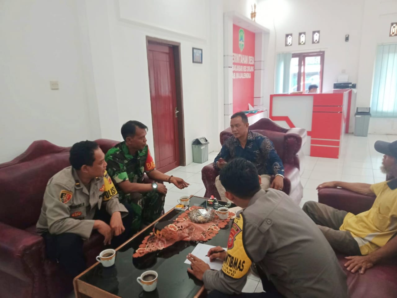 Majalengka – Panit Binmas Polsek Cikijing Polres Majalengka Polda Jabar Ipda Brigmono R, S.H bersama Bhabinkamtibmas Briptu Fadli dan anggota Koramil Cikijing Kopda Bambang menyambangi Kantor Desa Bagjasari, Kecamatan Cikijing, Kabupaten Majalengka, Jum’at (21/07/2023).