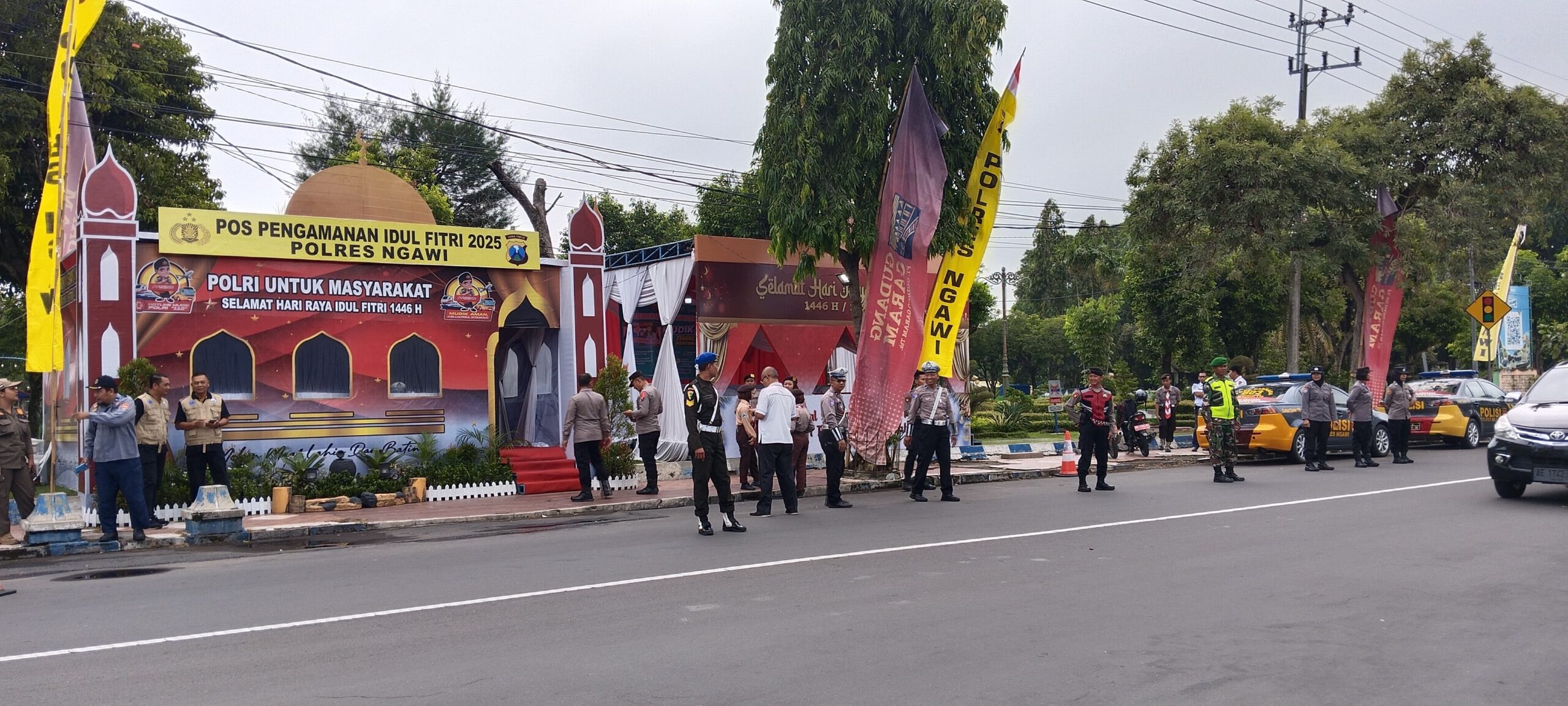 NGAWI,BUSERJATIM.COM– Dalam rangka memastikan keamanan dan kenyamanan masyarakat selama perayaan Idul Fitri 2025, personel Kodim 0805/ Ngawi Koramil 0805/14 Bringin bersama Polres Ngawi, Satpol PP, Dinas Perhubungan (Dishub), dan tenaga kesehatan melaksanakan pengamanan di Pos Terpadu Idul Fitri. Pengamanan ini dilakukan di titik Pos Pelayanan, yaitu Pos Pam Alun-alun Ngawi, guna memberikan pelayanan optimal bagi para pemudik yang melintas dan masyarakat yang berlibur di wilayah Kabupaten Ngawi, Senin 31/03/2025)