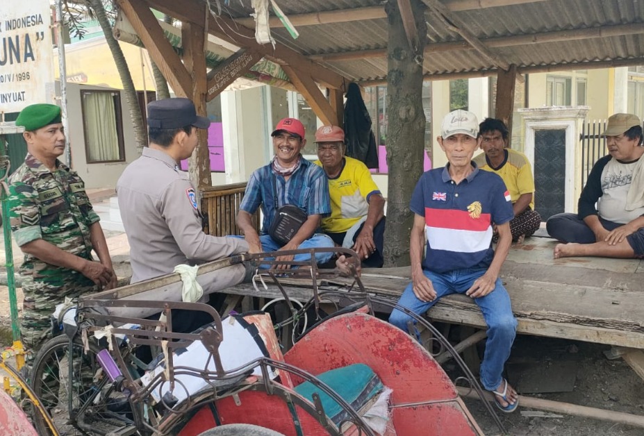 Indramayu,– Patroli dialogis terus dilakukan Bhabinkamtibmas Polsek Juntinyuat jajaran Polres Indramayu Polda Jabar bersama Babinsa setempat.