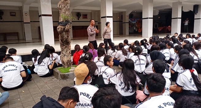 DEMPASAR, BUSERJATIM.COM Dalam upaya meningkatkan kesadaran dan pengetahuan Siswa-siswi mengenai kenakalan remaja dan pergaulan bebas yang menyimpang, Kanit Binmas Polsek Denpasar Timur (Dentim) Iptu I Nyoman Sujana S.H., yang didampingi oleh Panit Binmas Ipda NI Nyoman Ariani S.H., melaksanakan kunjungan ke SMK PGRI 3 Denpasar pada hari Selasa (11/06/2024) pukul 08.30 Wita. Kegiatan penyuluhan ini berlangsung di halaman sekolah yang terletak di Jln. Narakusuma, Denpasar Timur.