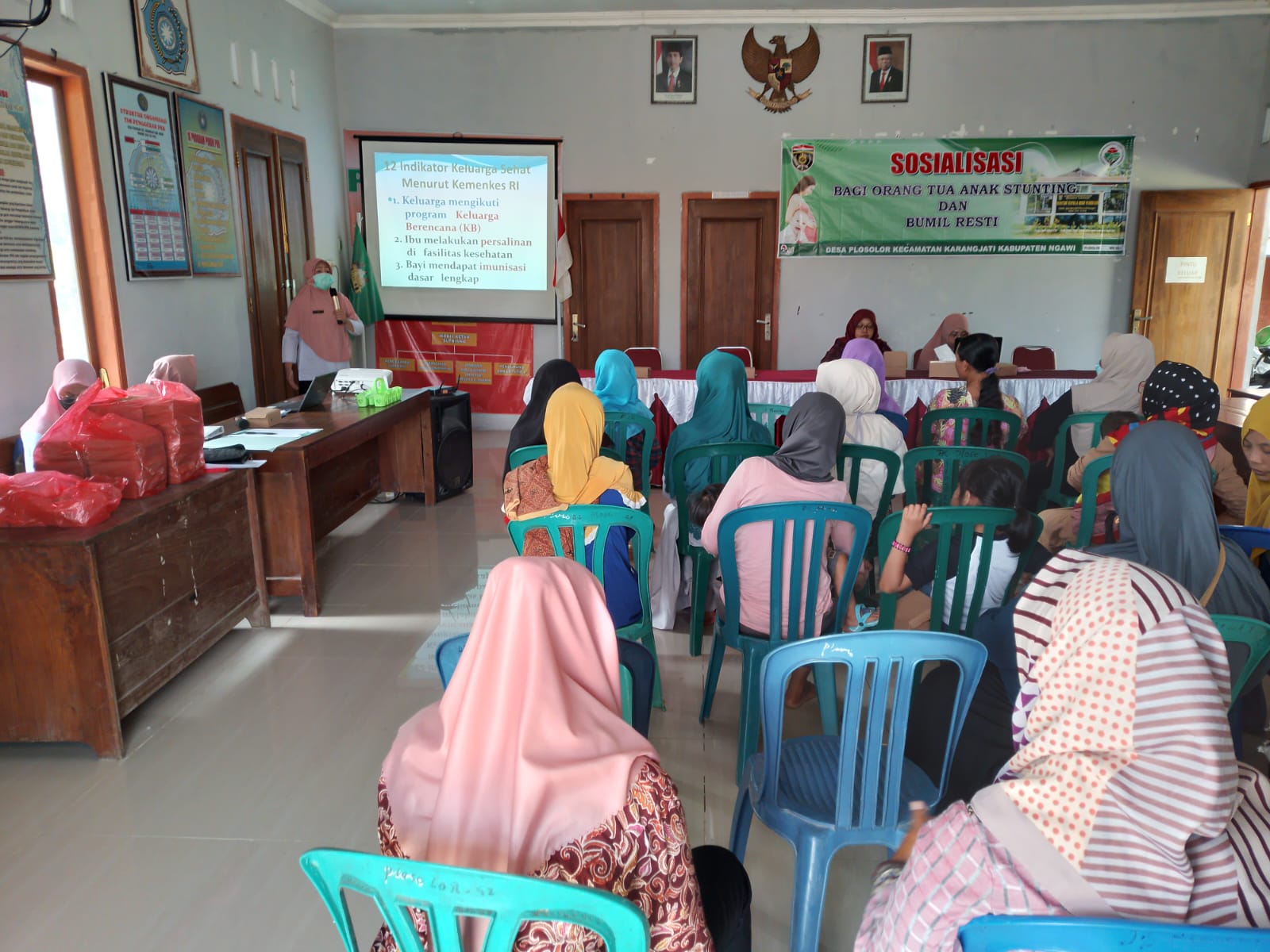 Rabu, 31 Mei 2023 petugas Puskesmas Karangjati di wilayah kerja Kecamatan Karangjati Kabupaten Ngawi mengadakan kegiatan sosialisasi bagi orang tua anak stunting dan Bumil Resti di pendopo kantor Desa Ploso lor dengan mendatangkan 4 orang bumil dan 11 orang orang tua anak stunting.
