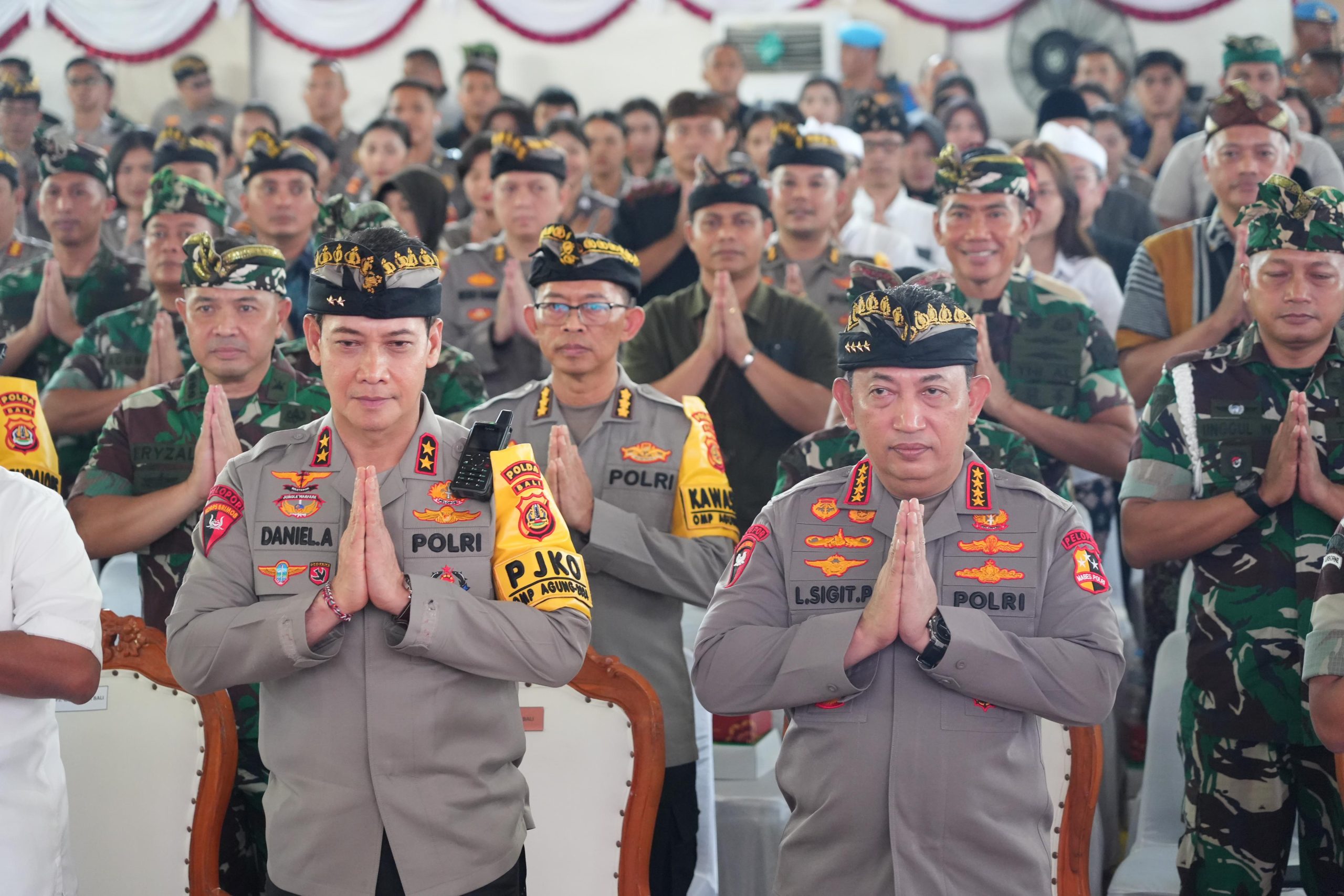 Bali. Kapolri Jenderal Pol. Listyo Sigit Prabowo bersama Panglima TNI Jenderal Agus Subiyanto mengikuti doa bersama lintas agama bersama TNI-Polri dan masyarakat Bali.