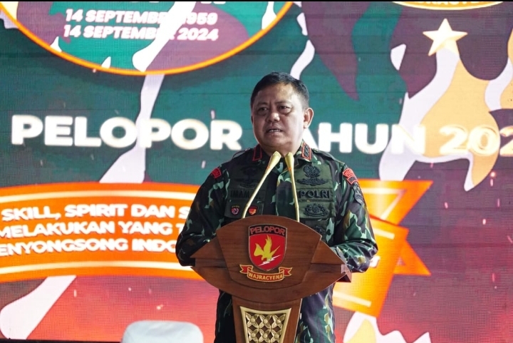 Puncak Syukuran Peringatan Hari Ulang Tahun (HUT) Ke-65 Pelopor mengusung tema “Dengan _Skill_, _Spirit_ Dan Stamina Pelopor Kami Siap Melakukan Yang Terbaik Untuk NKRI Guna Menyongsong Indonesia Emas 2045” yang berlangsung di Mako Pasukan Pelopor Korbrimob Polri Kelapadua, Cimanggis, Kota Depok. Sabtu (14/9/2024).