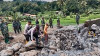 Gotong Royong, Polisi Bersama TNI dan Warga Bersihkan Material Banjir Bandang di Bondowoso