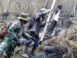 Anggota Koramil 0804/02 Plaosan, BPBD, Relawan dan Masyarakat Terus Bergerak Padamkan Kebakaran Hutan Gunung Lawu