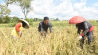 TNI Bantu Petani Panen Padi di Tengah Pembangunan Jalan TMMD HST
