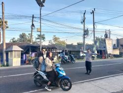 Rutinitas Setiap Pagi, Ps. Panit Samapta l Polsek Cikijing Laksanakan Pengaturan Lalin Di Depan Sekolah