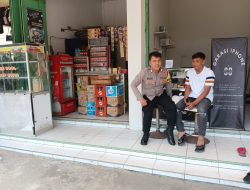 Sambangi Warga di Pertokoan, Bhabinkamtibmas Polsek Cikijing Sampaikan Pesan Kamtibmas