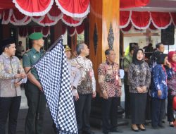 Dandim 0806/Trenggalek Bersama Forkopimda Hadiri Prosesi Pemberangkatan Kirab Pataka “Jer Basuki Mawa Beya” ke Kabupaten Tulungagung