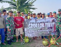 Babinsa Karangjati Bersama Masyarakat Gropyokan Tikus di Sawah.