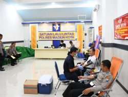 Menyambut Hari Lalulintas Bhayangkara Ke-68, Satlantas Polres Madiun Kota melaksanakan Donor Darah