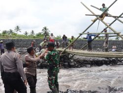 TNI-Polri dan Warga Lumajang Gotong Royong Bangun Jembatan Darurat Pasca Banjir Lahar Dingin Gunung Semeru