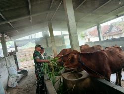 Peduli Kesehatan Hewan Ternak, Babinsa Karangjati Mengecek Ternak Sapi di Daerah Binaan
