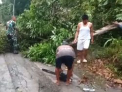Pohon Tumbang Halangi Jalan, Babinsa Paron Bersama Warga Gotong Royong Bersihkan Lokasi