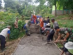 Babinsa Koramil Sine Bantu Warga Rabat jalan