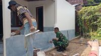 Warga Bangun Rumah, Babinsa Kodim Ponorogo Bantu Ngecat