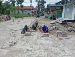 Babinsa Koramil Geger Bantu Warga Pasang Paving.