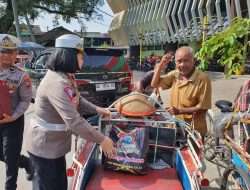 Sambut Hari Bhayangkara ke-77, Satlantas Polres MAGETAN Patroli Sambil Bagikan Bansos