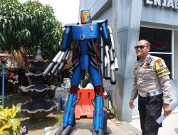 Kreatif dan Edukatif, Ratusan Knalpot Brong Sitaan Dijadikan Patung Robot Oleh Polresta Malang Kota