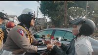 Polwan Polres Mojokerto Berbagi Coklat Ajak Masyarakat Tertib Lalu Lintas
