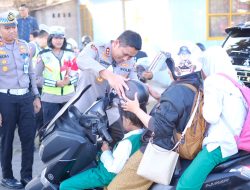Sambut HUT Kemerdekaan RI ke-78, Polres Blitar Kota Bagikan Helm Dan Bendera Bagi Pengguna Jalan