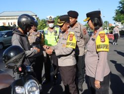 Demi Keselamatan!Kapolres AKBP Teguh Priyo Wasono Berikan Helm Gratis Ke Pengendara Motor