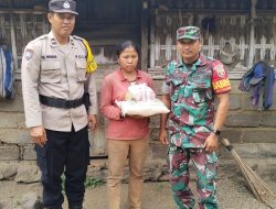 Wujudk Kebersamaan dan Kekompakan, Bhabinkamtibmas Desa Tulamben Bersama Babinsa Salurkan Bantuan Sembako