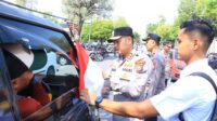 Kapolres Ngawi Turut Pasangkan Bendera Merah Putih di Kendaraan yang Melintas, Tingkatkan Jiwa Nasionalis