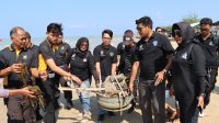 Gerakan Peduli Lingkungan Polres Pamekasan Bersama Media dan Komunitas Vespa Bersihkan Pantai