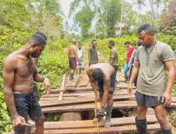 Perbaikan Jembatan Oleh Satgas Petik Bintang Yang Dirusak Kelompok KKB Di Kampung Ayata