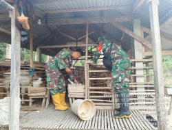 Peduli Kesehatan Hewan Ternak, Babinsa Pos Selopuro Dampingi Kegiatan Vaksinasi PMK Di Wilayah Binaannya