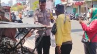 Wujud kepedulian, Bhabinkamtibmas kejasan Polsek Utbar Polres Cirebon Kota bagikan nasi kotak