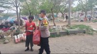 Wujud kepedulian, Bhabinkamtibmas Kalijaga Polsek Seltim Polres Cirebon Kota bagikan nasi kotak