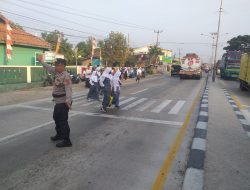Unit Lalu Lintas Polsek Lohbener Berperan Aktif Dalam Pengaturan Lalu Lintas dan Membantu Anak Sekolah Menyeberang