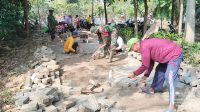 Dukung Pembangunan Infrastruktur di Wilayah, Babinsa Pangkur Bersama Masyarakat Gotong Royong Pavingasasi Jalan.