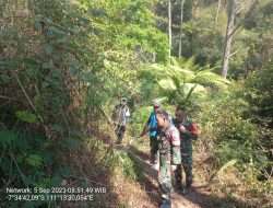 Agar Tidak Meluas, Anggota Koramil Jogorogo Terus Bantu Petugas Padamkan Api Yang Membakar Hutan