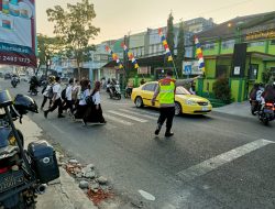 Strong Point Pagi Anggota Polsek Kadipaten lakukan pengaturan dan penyebrangan Anak Sekolah