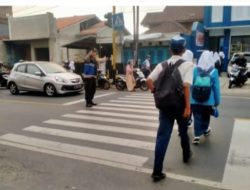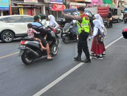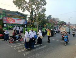 Strongpoint Pagi Polsek Ciasayong pengaturan lalu lintas dan seberangkan anak sekola
