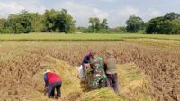 Babinsa Kodim Ponorogo Giat Pendampingan Petani Panen Padi