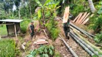 Anggota Kodim Ponorogo Kerja Bakti Buat Jembatan Penghubung dan Penopang Pipa Irigasi