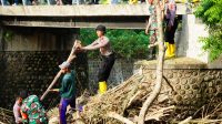 Pasca Banjir, Polres Ponorogo Bersama TNI dan Warga Bersihkan Sungai di Jembatan Tempuran