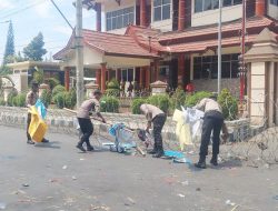 Peduli Lingkungan Polisi Bersihkan Sampah Usai Aksi Demo di Kantor DPRD Situbondo