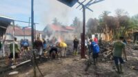 Satgas TMMD ke-124 Kodim 1002/HST Ulurkan Bantuan Bersihkan Puing Kebakaran Rumah Warga di Barikin