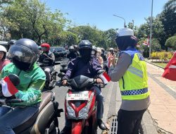 Sambut HUT RI ke-78 Polrestabes Surabaya Berbagi Bendera Merah Putih ke Pengguna Jalan